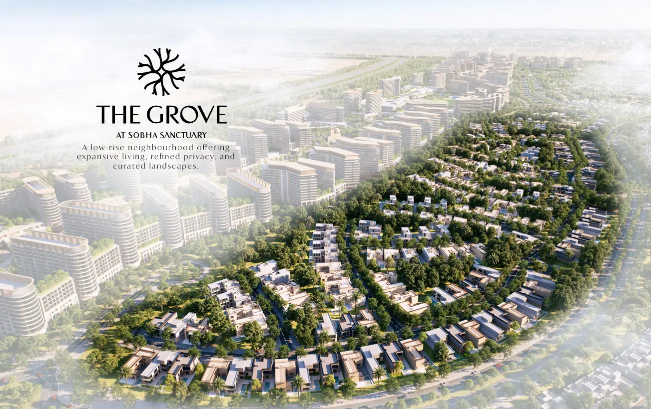 Sobha Sanctuary Dubai is a premium master-planned residential development by Sobha Realty, designed as a luxury urban sanctuary in the heart of Dubai. The project features elegant apartments and ultra-luxury villas surrounded by lush greenery, landscaped parks, and serene water elements, offering a refined lifestyle experience.